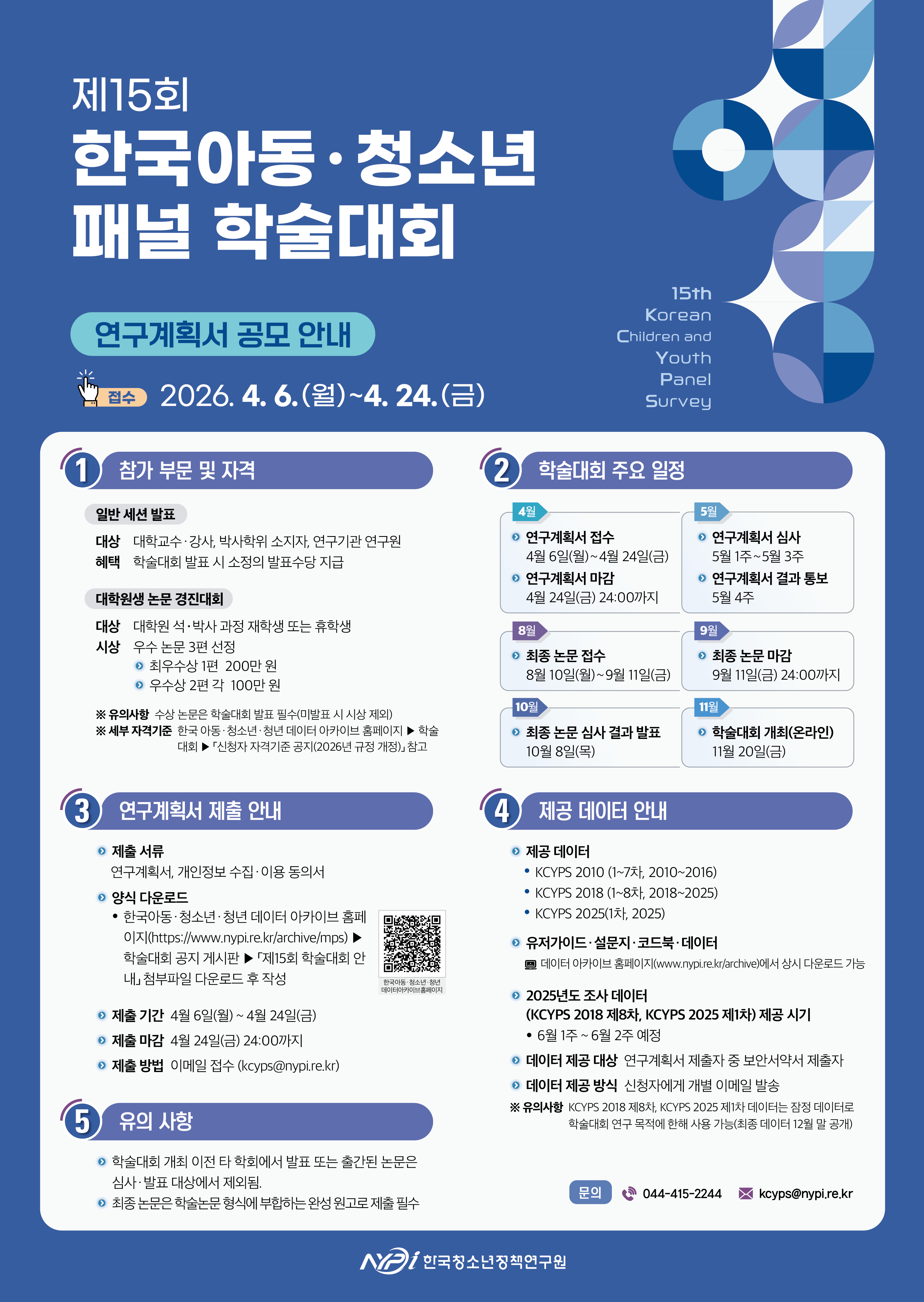 「제15회 한국아동·청소년패널 학술대회 연구계획서 공모 」안내